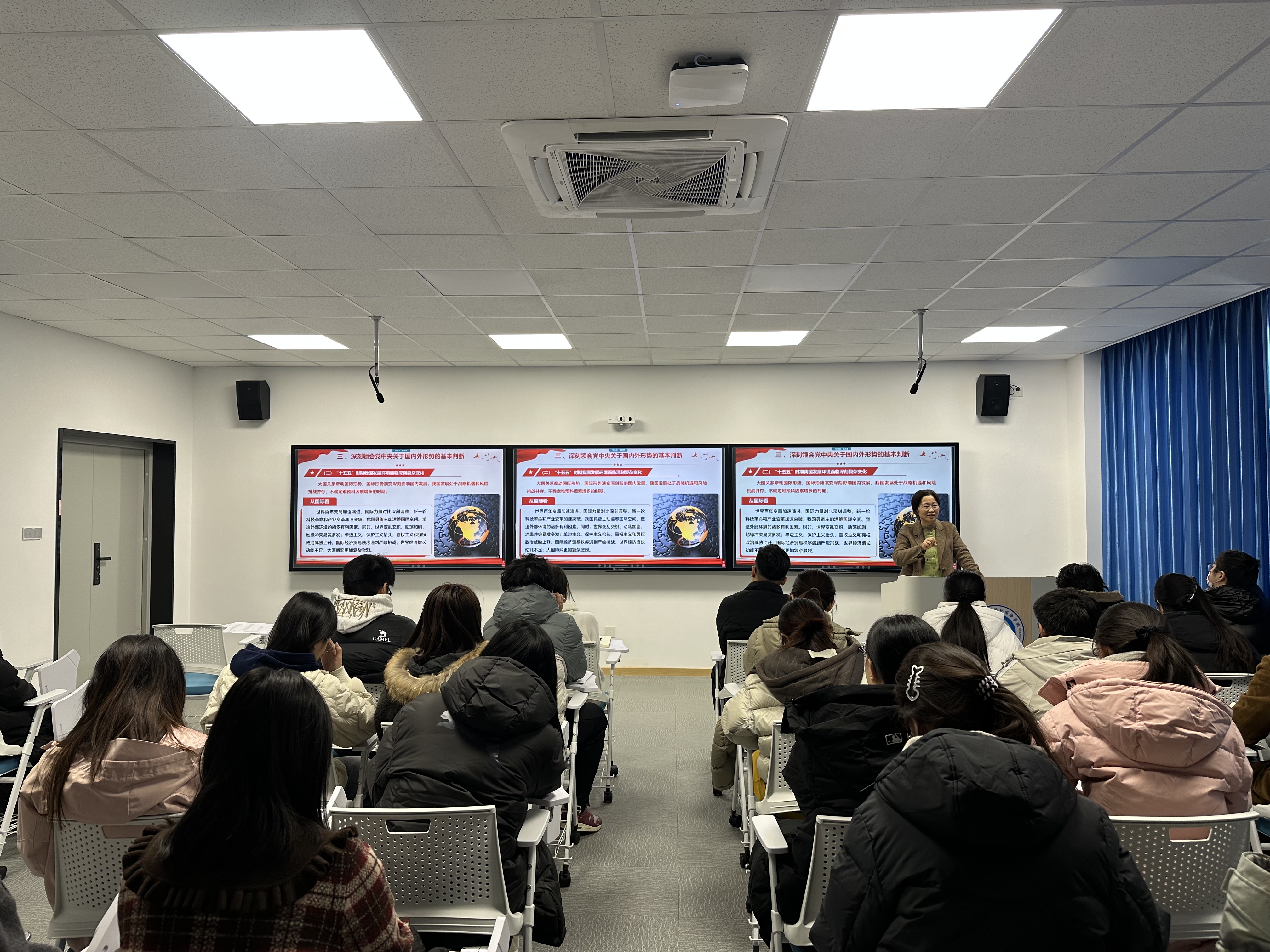 曲斌艳围绕党的二十届四中全会基本情况及重大成果、“十四五”时期我国发展取得的重大成就、深刻领会党中央关于国内外形势的基本判断、准确把握“十五五”时期经济社会发展的指导思想、重大原则、主要目标、战略任务和重大举措、根本保证以及如何将党的二十届四中全会精神落地见效五个方面,系统阐释了全会精神的丰富内涵。