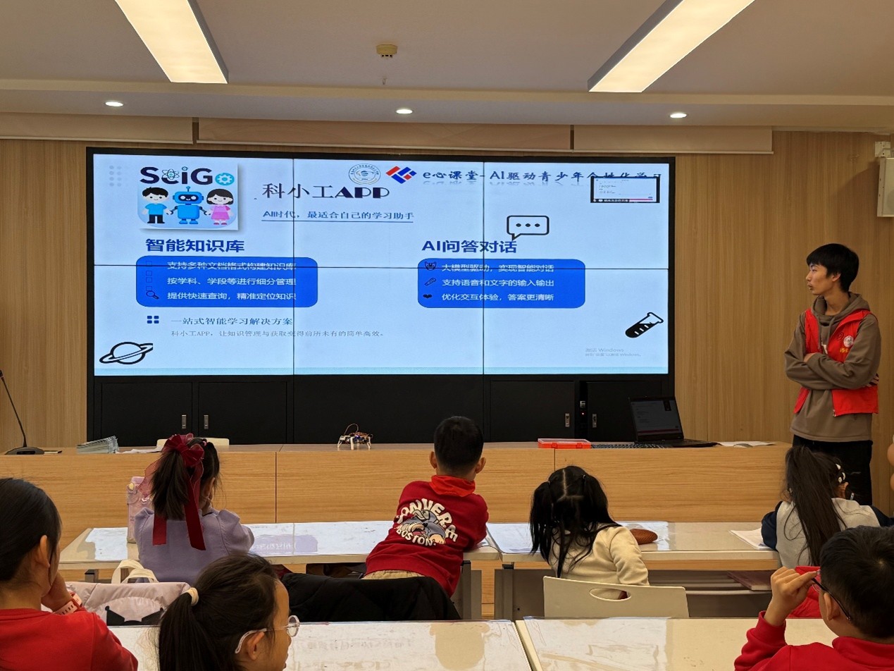 实践团队自主开发“科小工APP”——一套基于集成了智能知识库、AI问答对话、个性化学习路径规划三大核心功能的个性化学习系统,为青少年提供全方位学习支持。实践队员现场演示并指导青少年使用“科小工”智能伴学系统,分组指导青少年使用智能知识库功能整理学习资料,并通过AI问答对话解决学习疑问。实践队员特别注重指导青少年如何有效利用个性化学习路径规划功能,针对不同学科特点制定学习计划。实践队员现场演示了系统如何通过三大核心功能,打造从路径规划、体系构建到弱点攻克的全流程智能化学习体验。