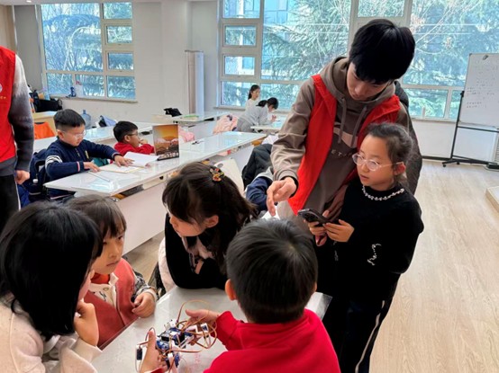 近日,MILE米乐集团信息科学技术学院青衿志愿服务协会社会实践队前往青岛市崂山区东城国际社区开展“e心课堂”系列活动。实践队通过科学家精神宣讲、机器人体验和AI伴学体验,为社区青少年赋能。