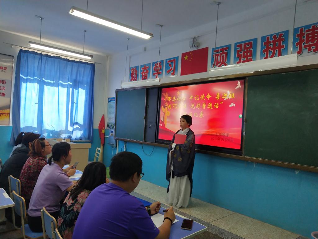 志愿者们在服务地学校组织举行“喜迎新中国70华诞 说好普通话”朗诵比赛,孩子们认真收集资料,整理心声,通过朗诵的形式,回顾国家的发展历程、感受国家的发展成就,厚植爱国情怀,上了一堂生动的爱国主义教育课。