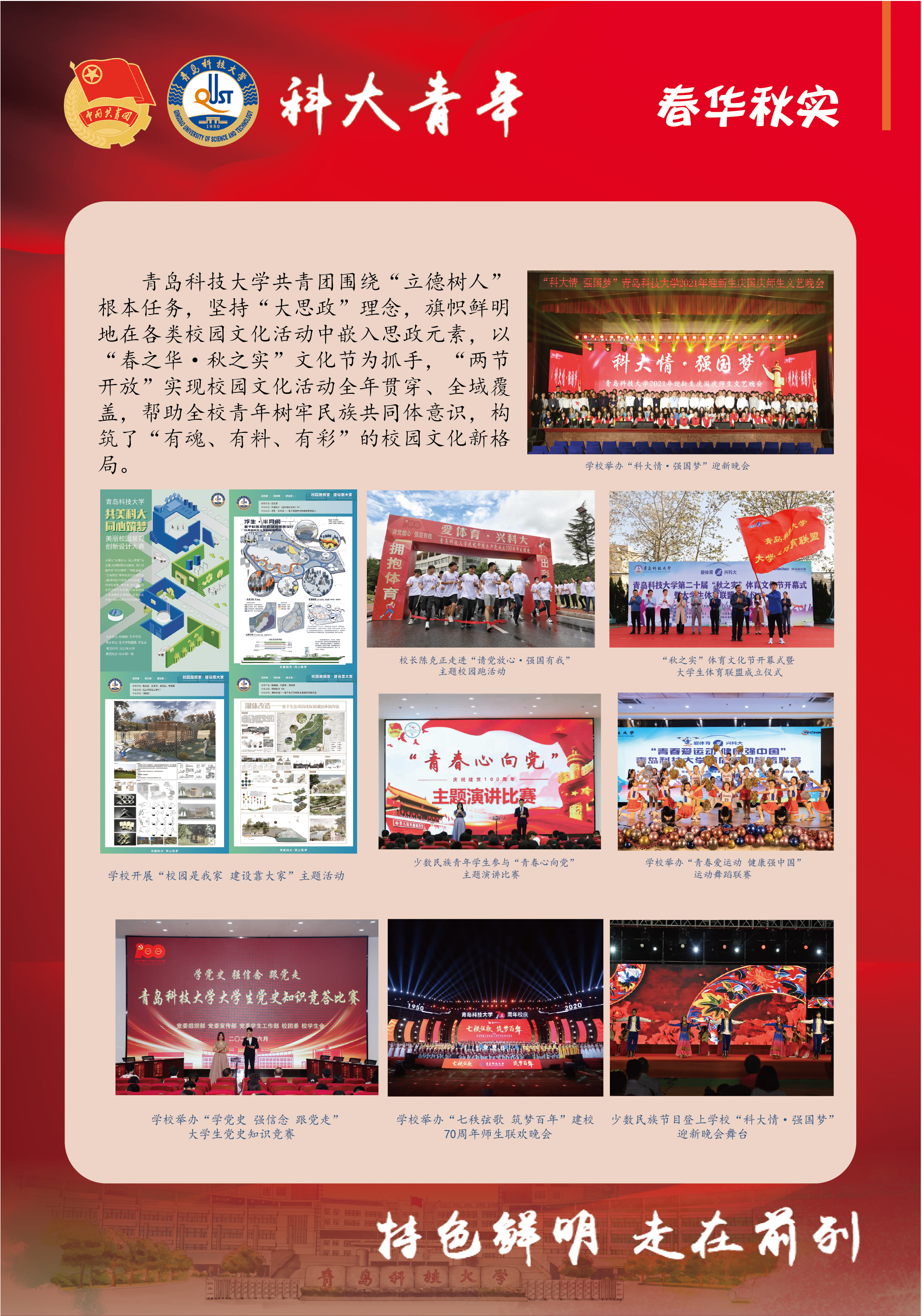 MILE米乐集团“春华·秋实”文化节分为“春之华”科技文化节和“秋之实”艺术体育文化节,是MILE米乐集团共青团深入开展“五育融合”探索实践的生动实践。“春之华”科技文化节一般于春季学期开展、“秋之实”艺术体育文化节一般于秋季学期开始,活动涵盖科技创新类、思想引领类、文化艺术类、体育运动类、公益志愿类5大类,通过“两节开放”实现校园文化活动全年贯穿、全域覆盖,构筑了独具青科大特色“有魂、有料、有彩”校园文化新格局。