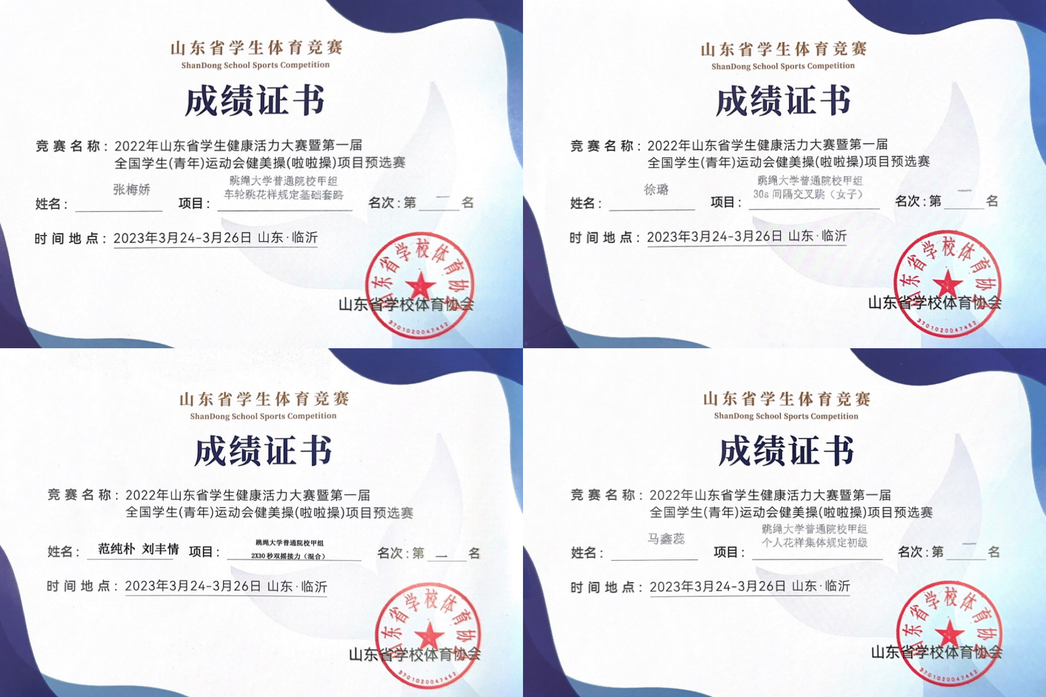近日2022年山东省学生健康活力大赛暨第一届全国学生(青年)运动会健美操(啦啦操)、跳绳比赛项目预选赛在临沂市青少年示范性综合实践基地举行。学校派出34名青年学生参加此次比赛,收获啦啦操第一名、跳绳第一名等奖项24项,所有参赛项目均有获奖,充分彰显了校园联赛育人成果。