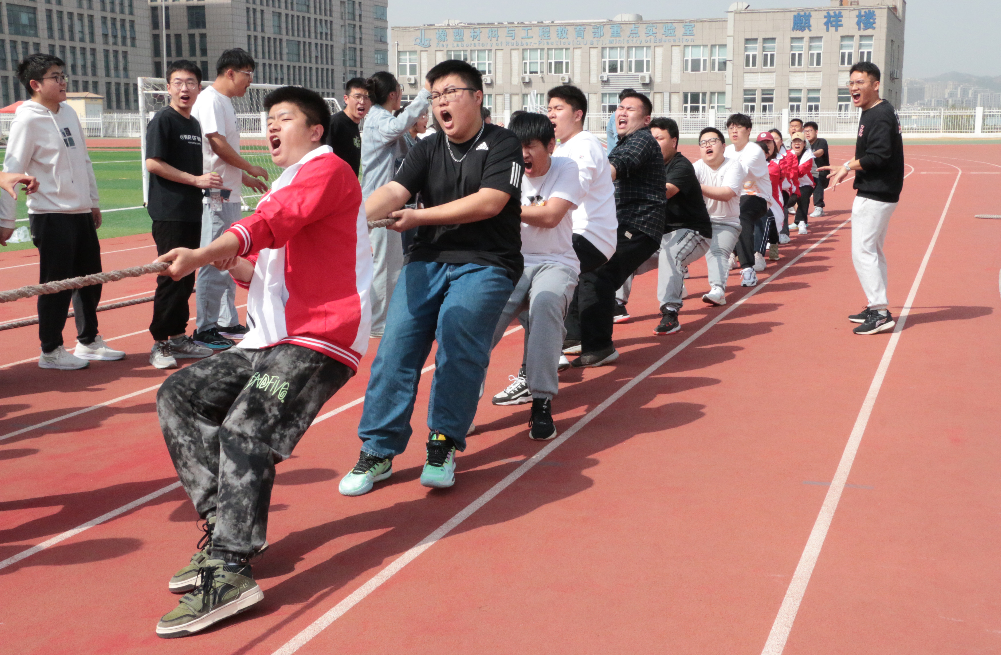 比赛现场,同学们激情满满,斗志昂扬,一阵阵哨子声、呐喊声、加油声在赛场上此起彼伏,现场气氛热烈高涨。经过激烈的比拼,崂山校区机电学院、经管学院、信息学院,四方校区高分子学院、化学院、环境学院,6支队伍在校区赛中脱颖而出,分别获得崂山校区、四方校区前三名。