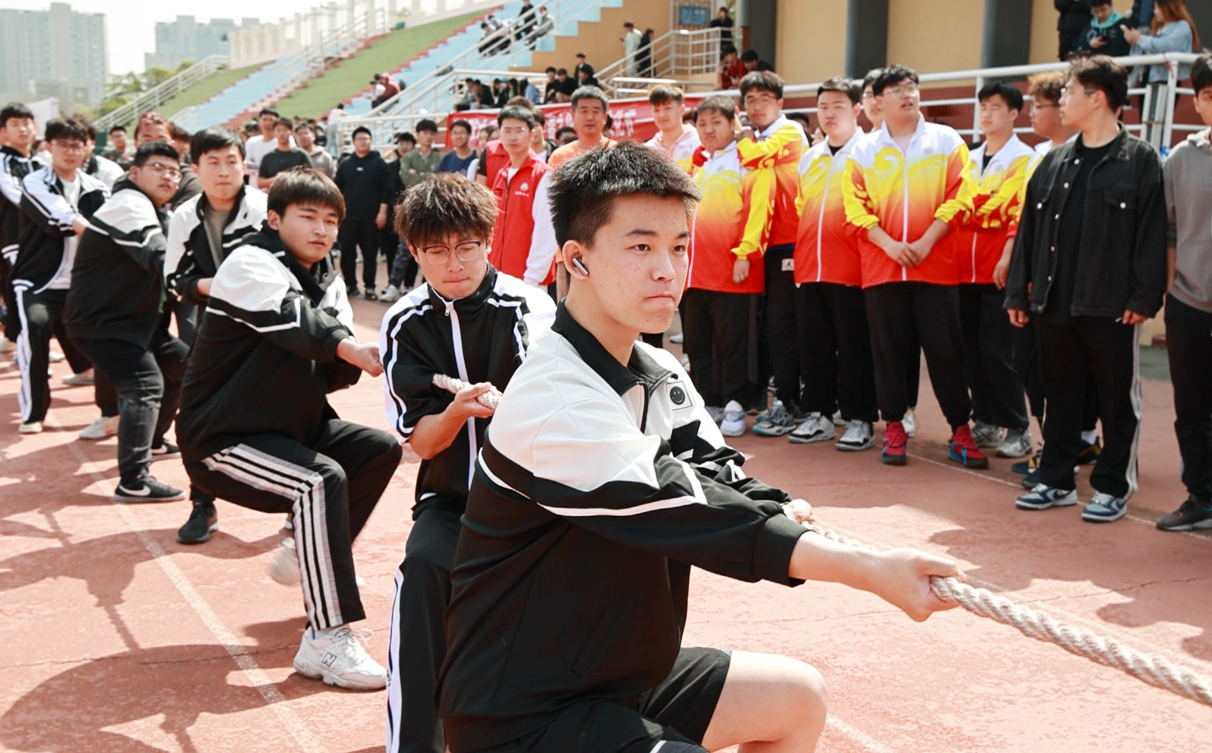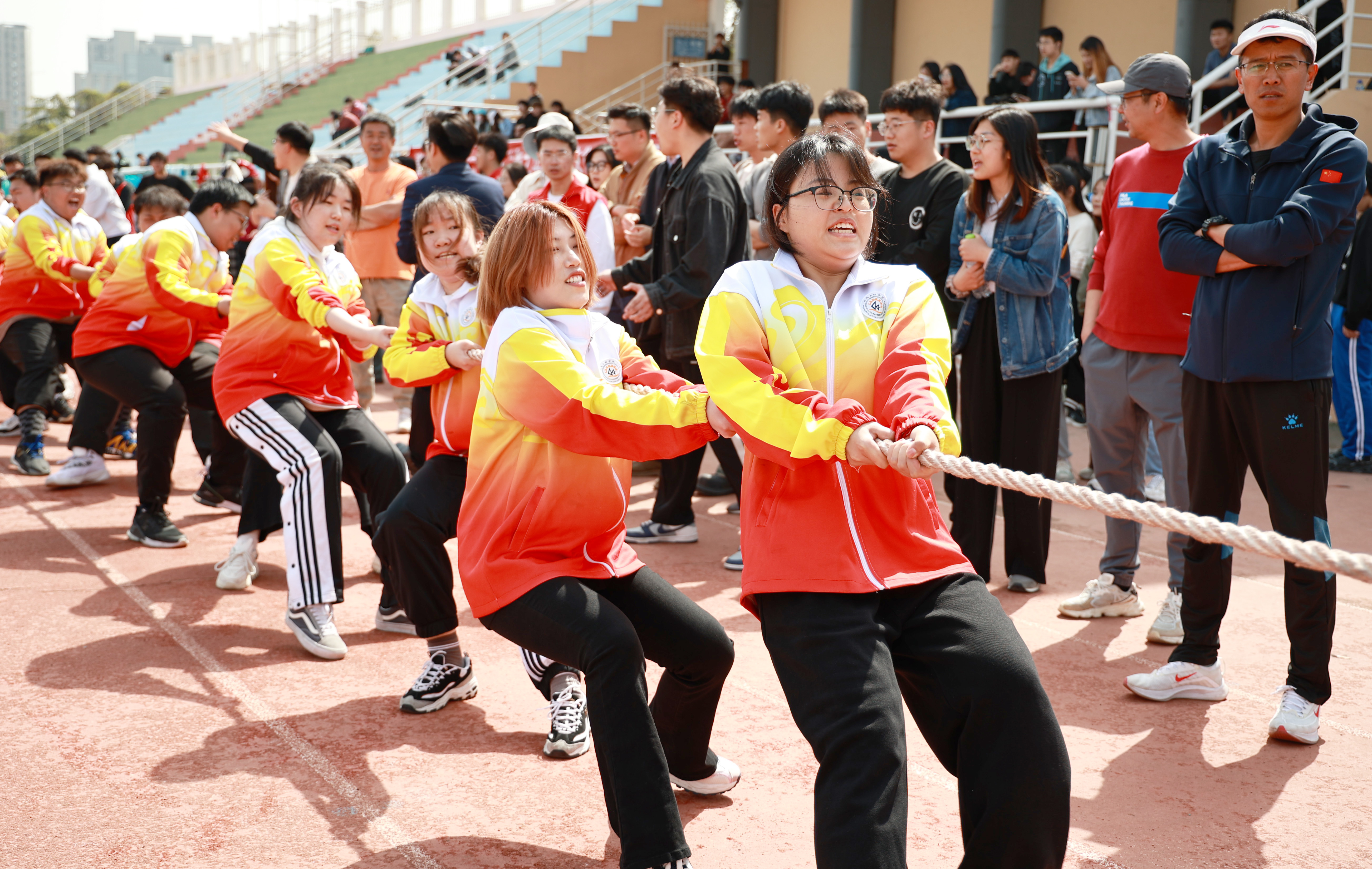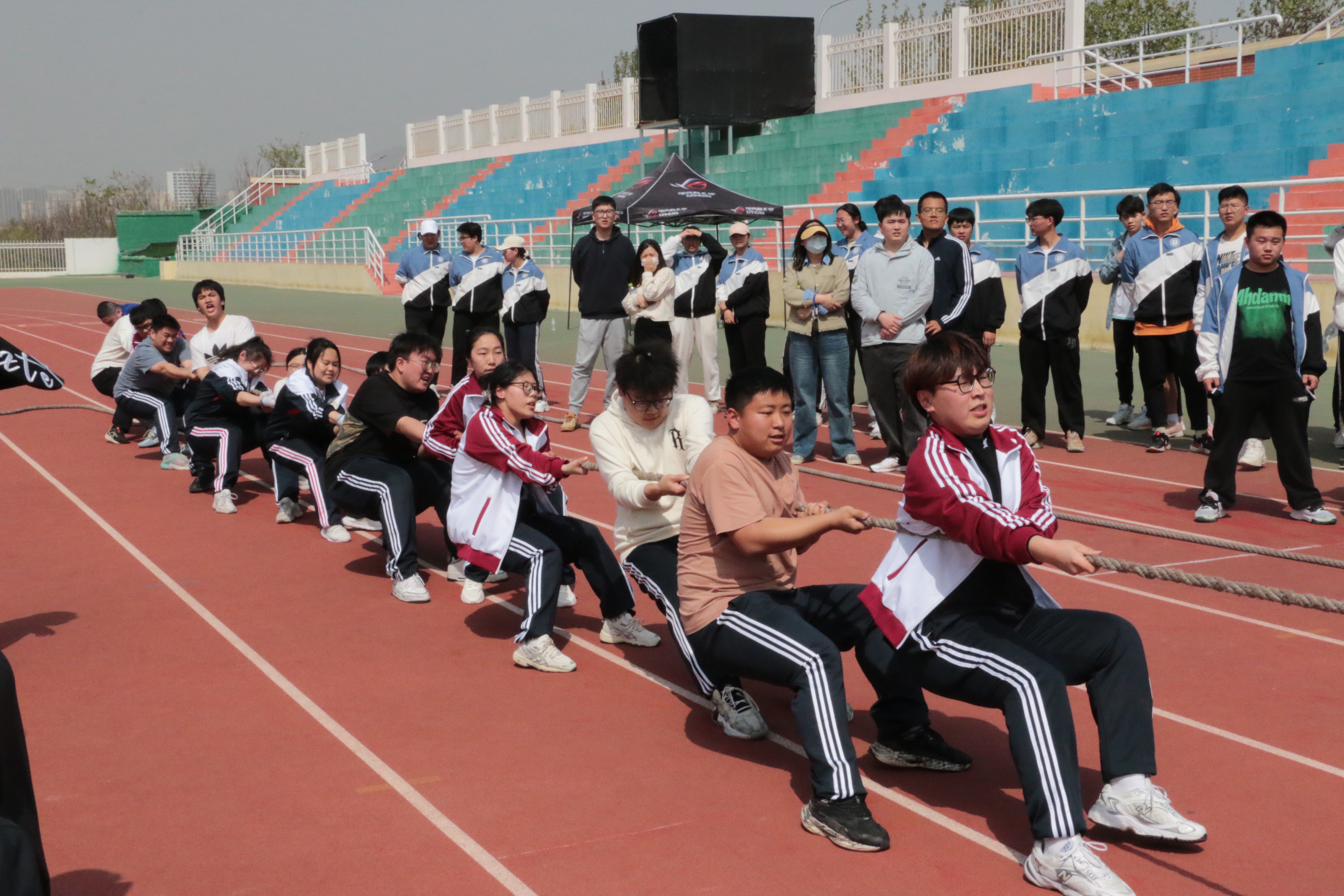 4月18日,学校首届拔河联赛在崂山校区南苑田径场和四方校区东山操场举行,校团委副书记陈兵参加活动,为本次拔河联赛致开幕词。