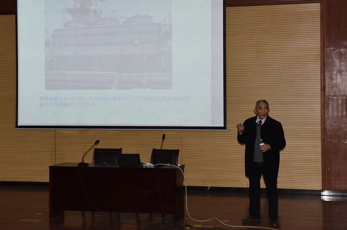 会上,黄素逸从热传递、传热过程、换热器三个方面向大家做了详细的阐述。他通过图片文字相结合的方式介绍了各种管道的用处及各自的优点,比较不同情况下各种管道的不足。在对于一些新型换热器展示时,讲述了外形设计优点及其内部结构原理。当讲到“弹性盘管换热器”时,运用表格向大家展示了大量实验数据,详细的介绍了该换热器的原理和优点。当讲到“折流杆海水闭式冷却器”取代俄罗斯产品时,指出由我国经过改造的该新型冷却器之后解决了设备磨损太快这一大问题。黄素逸在整场讲座中都有提及经济效益,使大家意识到在当下经济社会中,要尽量实现功能和经济的双赢,不仅要提高仪器工作效率,同时也要保证经济效益的最大化。最后,向大家讲解了关于空冷器的专业知识,介绍了一种新型工业冷却方式“水膜蒸发空冷器”,具体介绍了其原理和运用领域。会后,黄素逸与大家进行互动交流,耐心解答的大家提出的问题,并给出今后研究建议的方向。